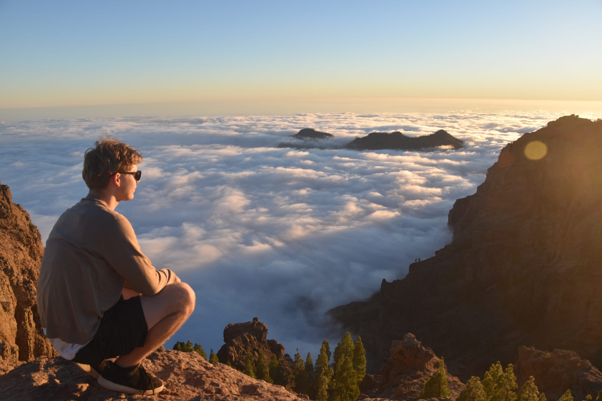 After the caldera hike there was enough time to keep exploring. Thanks to my rental car, I was able to recruit some friends from the hostel and make our way up to Pico de las Nieves in time for the sunset. As you can see, the peak rose high above the clouds.Pico de las Nieves was truly stunning, and I was able to capture some really great photos.As the sun crept towards the horizon, the pictures just kept getting more dramatic. Here you can see the famous Roque Nublo in the foreground and Tenerife in the distance.I really cannot put into words just how beautiful this sunset was. The rolling clouds and dramatic peaks shoving through them truly felt like something from a dream.The sun taking it's final dip below the horizon.And one last photo of Roque Nublo and Tenerife, as the setting sun cast its orange glow across the sky. I couldn't decide if I liked this photo better, or the previous one with the blues and purples of the early evening. So I've included both!That night, we went out for a couple drinks with some guys from the hostel. I had specifically picked the city (Las Palmas de Gran Canaria) and the hostel because I read that it was more social and had a better night life. NYE was right around the corner, and we wanted to party!