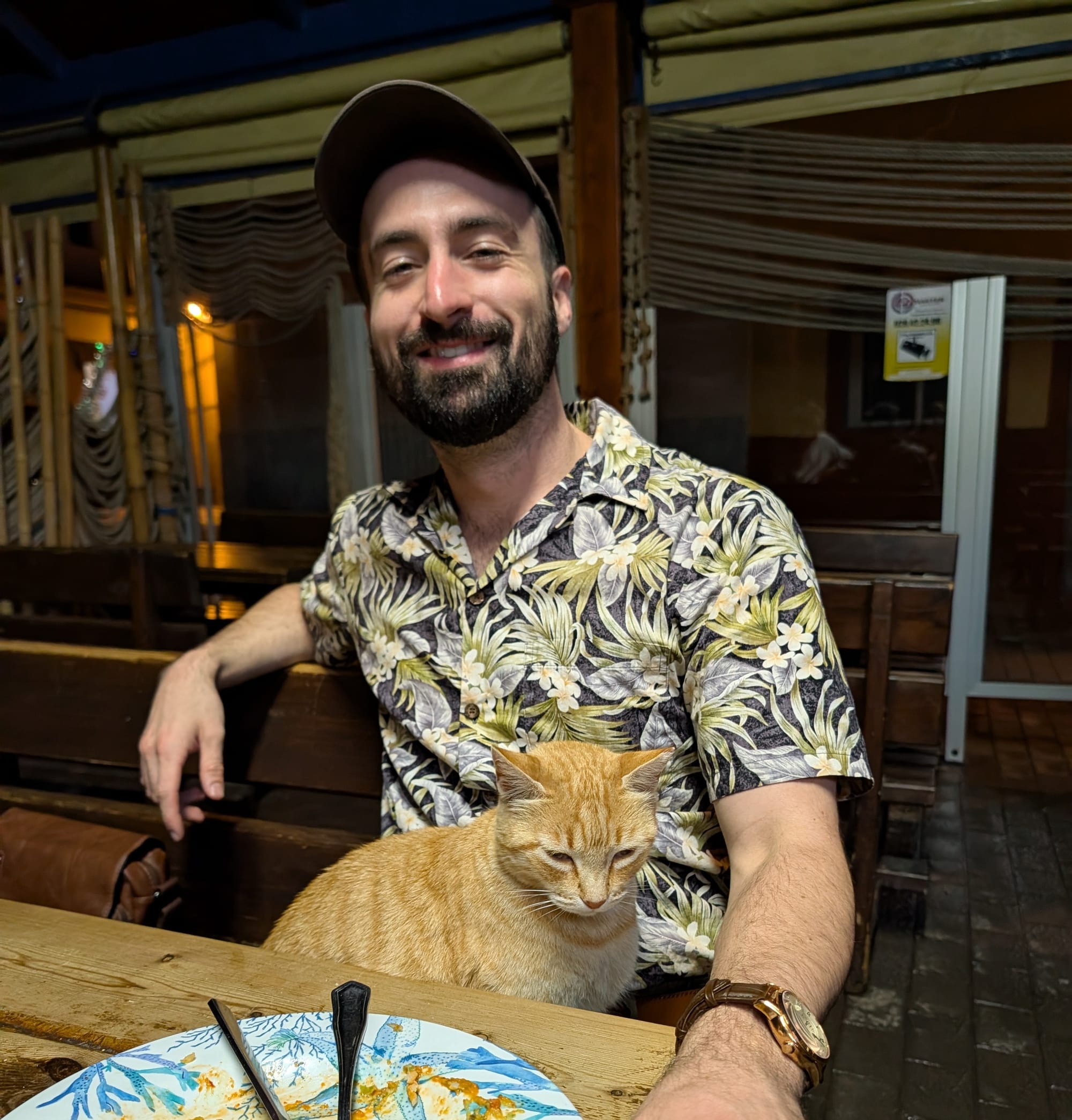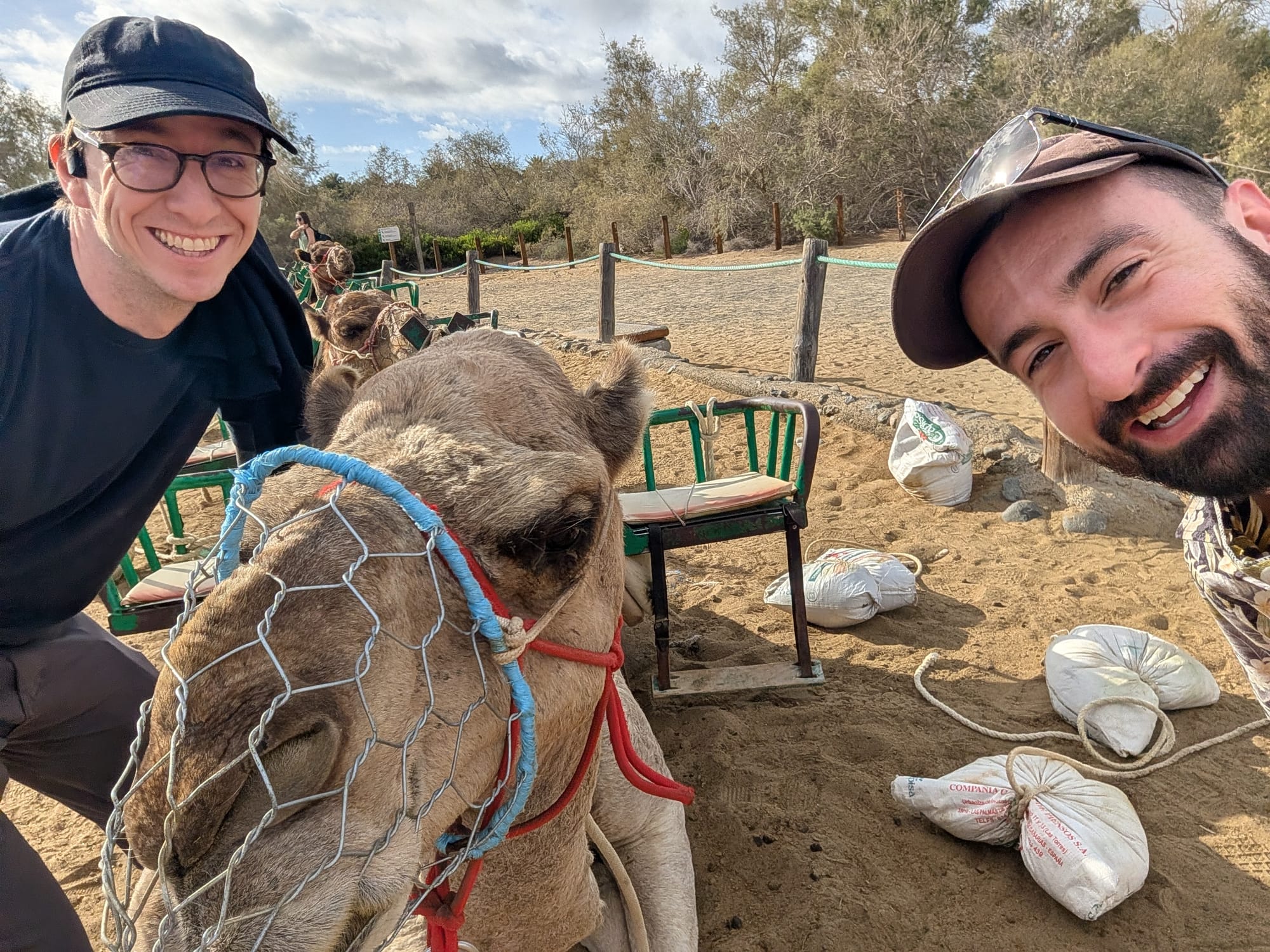 The next day, me and Alek headed down to Maspalomas for one of my most anticipated events: riding camels through the sand dunes. Unfortunately, this ended up being a total tourist trap. The dunes themselves were underwhelming, and the poor camels were clearly being mistreated. We ended up snagging a selfie, and then throwing our tickets in the trash.Instead of riding through the dunes, we just walked along the coast for a bit and snagged some photos. While it's not the epic adventure I had in mind, it was still a relaxing start to the day!After dropping Alek off at the airport, I recruited some more friends from the hostel to join for a road trip up north. It was a bit of a dreary weather, but it made for a dramatic lighting of the coastline. Here's a shot of the coast, somewhere around Playa del Risco.We eventually made our way to La Aldea Beach, which had some nice scenery.In addition to the scenery, there was also a nice kitty!Sunset on the beach was really beautiful, which was a recurring theme for this trip. For some reason this photo keeps getting compressed and causing the clouds to look odd and grainy. Perhaps it'll go away with final upload, but here's the full resolution photo.After sunset, we ate at the nearby restaurant. The kitty seemed to really like me in particular, following me all the way to the restaurant and then hopping in my lap for some cuddles.