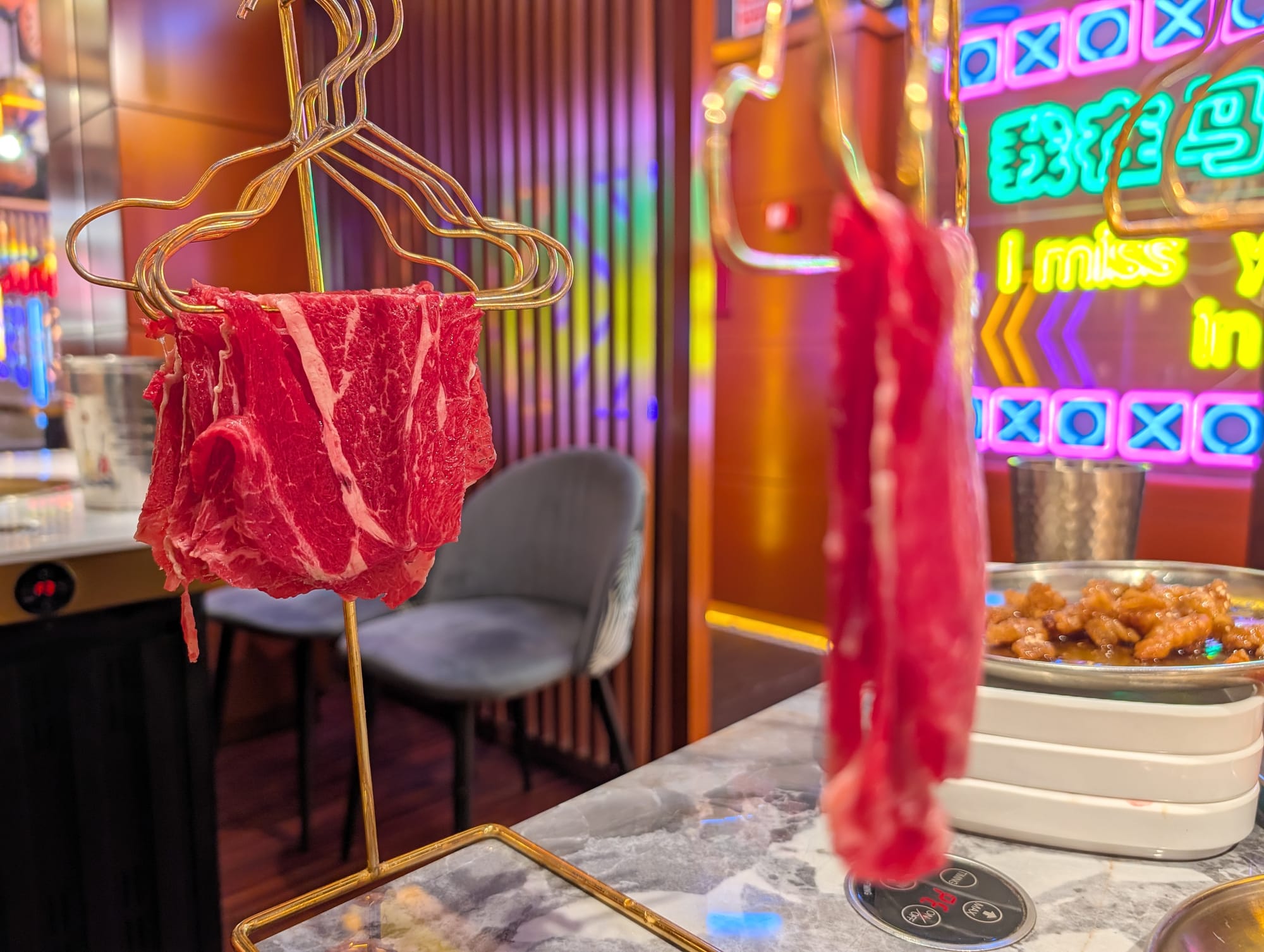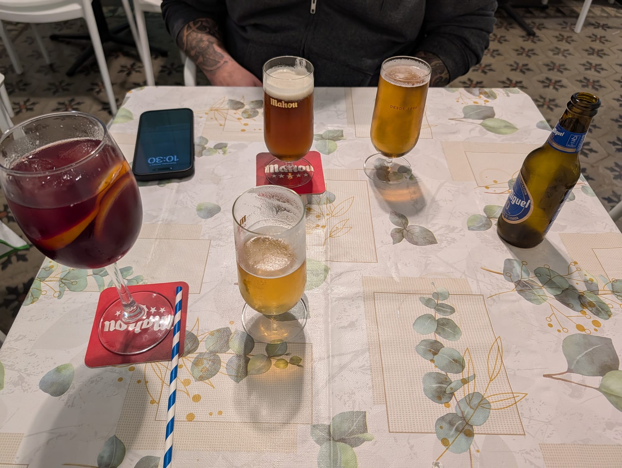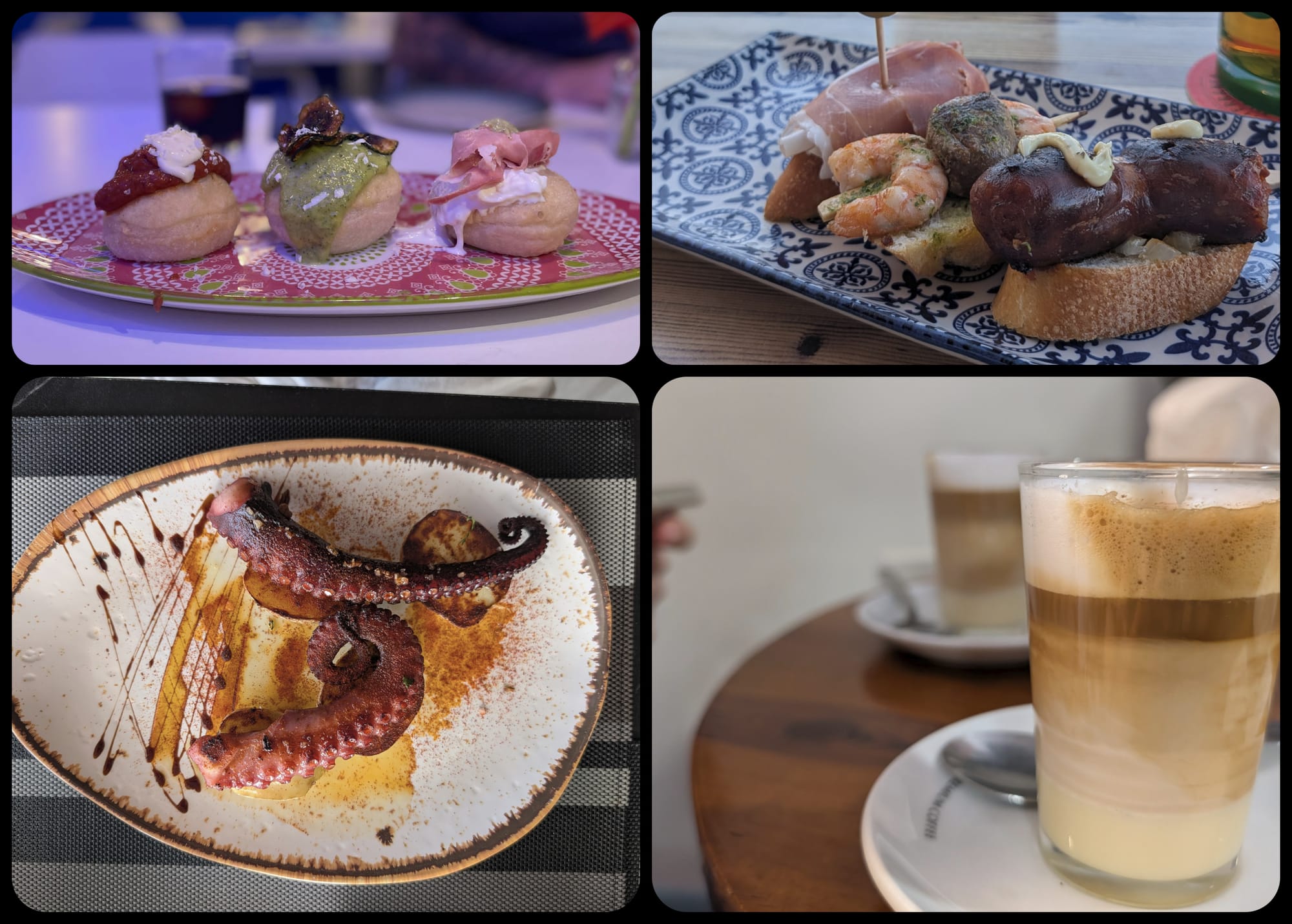 Me and Justin were mostly relaxing in Madrid, and playing board games. The following afternoon, I went out walking around town to do some sightseeing. It was rather uneventful, but I did catch this cool photo along the way.For my only night in Madrid, I got the opportunity to cross an item off my bucket list: watching a futbol game in Spain. This was Getafe vs. Real Sociedad. The home team lost, but that was okay because I had no stake in either team. And we ended up scoring the ticket resale lottery, with front row seats!Lastly, I didn't do the best capturing food that I ate along the way. But here's some of the foods from the Canary Islands. As you can imagine, it was all delicious. On the top we have some tapas from a few restaurants, and in the bottom left is some grilled octopus I enjoyed. The photo on the bottom right is a barraquito, a local coffee with a few types of milk, rum and a slice of lemon. It was really sweet, and absolutely delicious!As is tradition, me and Justin went out for Korean BBQ. The presentation of this restaurant was really unique, bringing out slices of beef on this faux coat hangers. Delicious!