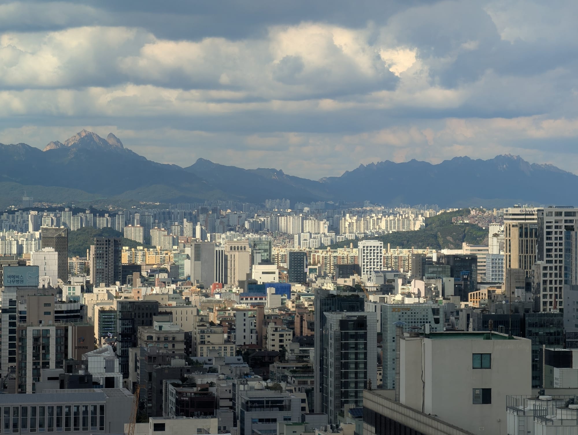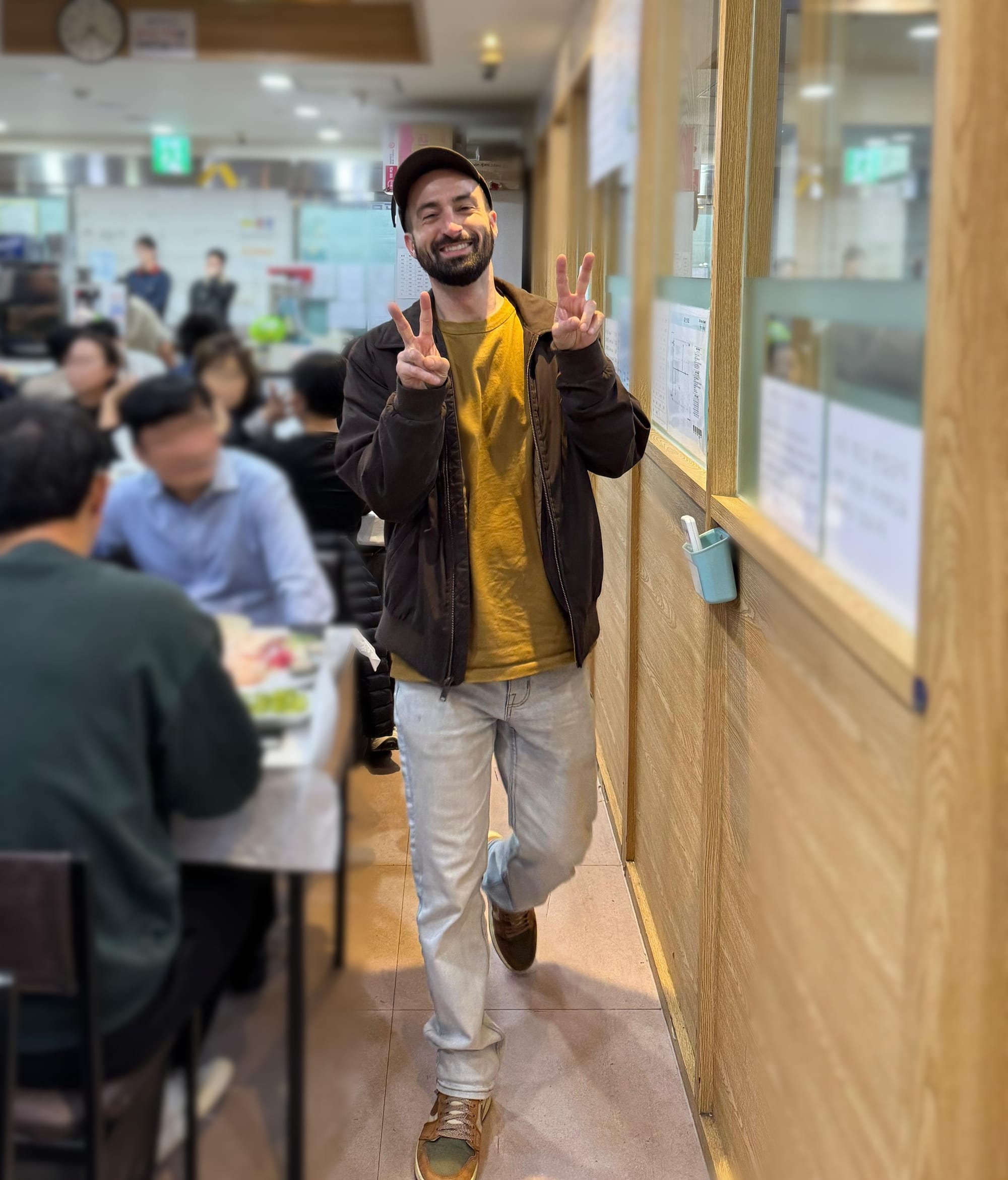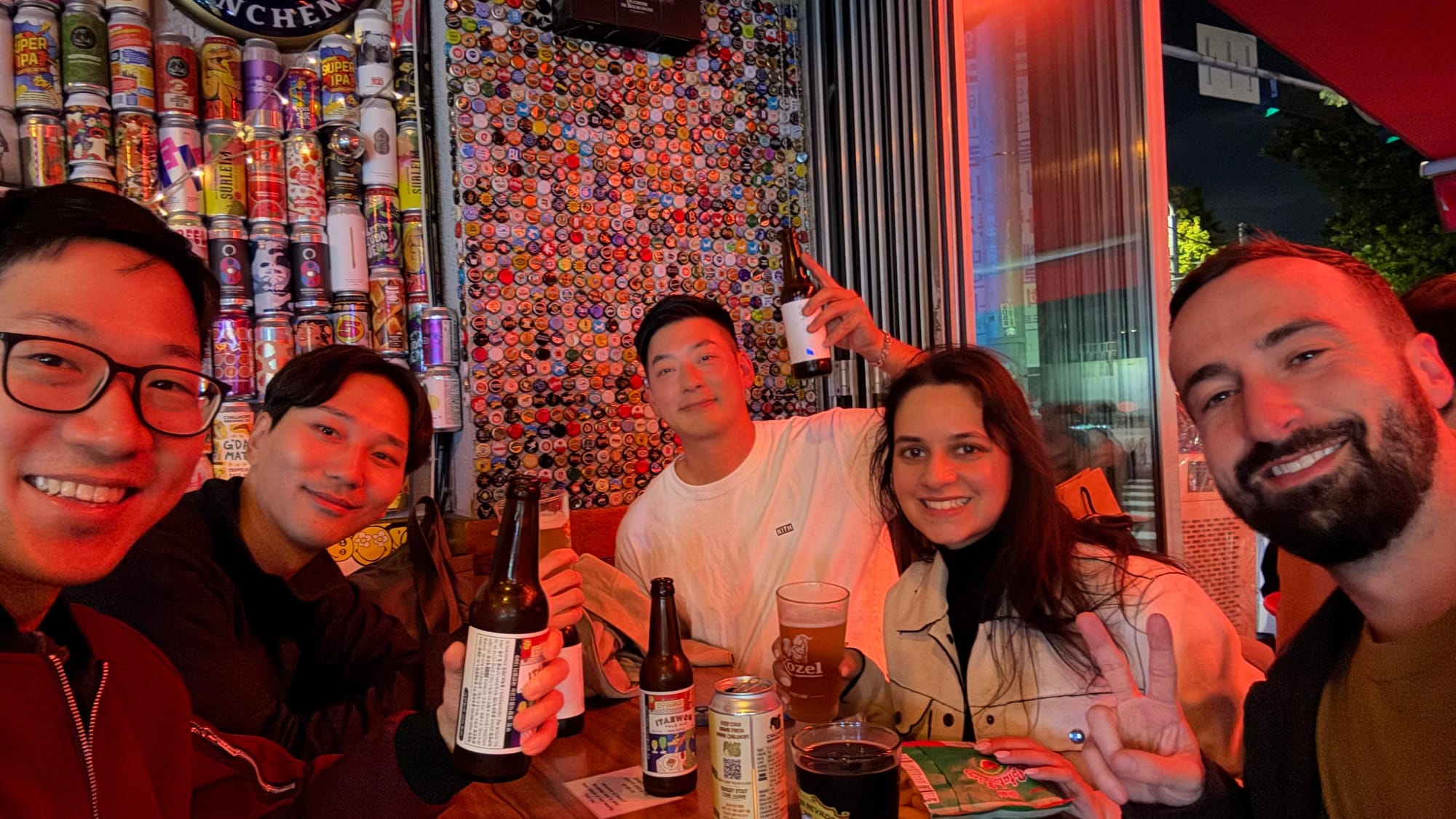 The following day, I moved locations from the Airbnb near Hongdae street over to Gangnam district. That's where the Google office is, so I stopped in to admire the views and grab lunch.I spent a good portion of the day just as you see here: reading at a cafe. It's nice to revisit cities, because I can spend time doing things like this rather than feeling pressure to go sightseeing or maximizing my days.That night, I met up with some of the gang for dinner. Afterwards, we headed to Woori Super, which is a really cool craft beer spot. I actually visited this same place last time I was in Korea, and really enjoyed it both times.Nothing to add here, just being goofy with the gang 😄The next day, we headed off to an archery lesson. This was my first time trying archery, and it was way more difficult than I expected it to be. But loads of fun! From left to right: Phelix (the groom), Mike, Sonal, myself, Robert and George. Some more folks from the wedding group were here as well, but out of frame.I was feeling a bit socially drained after archery, and everyone else was going to visit Changdeokgung palace. I've already been, so decided to set off on my own. Following my time-tested rule, I just started walking whichever way gained elevation. This was a scenic residential area I passed on my way "up."Before I fully realized what was happening, my "idk just walking up" path ended up on a trail to the top of Bugaksan Mountain. This was a really beautiful hike, and I just so happened to be there right at sunset. There was also very few people on the trail.The views were really quite nice, and I just so happened to have brought my camera with me. I just kept going up, because after spending so much time in the city I was really in the mood to get out in nature and lose myself in my thoughts for a while.As I got closer to the top, the sunset really started to bloom. It was quite spectacular, and I felt really fortunate to have such a crazy set of coincidences: beautiful hike, great weather, no other foot traffic, and a gorgeous sunset to boot!One final photo to share - from the peak of the mountain. I was super sweaty, exhausted, and my legs were killing me. I didn't expect to go on such a long hike, and had a heavy backpack and clothes (including shoes) that weren't ideal for a long hike. Still super worth it!After the hike, I walked past a so-called "listening bar." Curious what that could mean, I ducked inside and ended up having one of the most memorable nights.